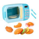 キッズ電子レンジオーブンおもちゃ、エレクトロニックふりロ波機能付き。ブルー13本で、幼児のプレイキッチンに最適な家電です。