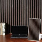 ダークブラウンの吸音パネル4枚セット。天然木使用で、おしゃれなインテリアに最適。騒音防止や吸音効果があり、DIYやリフォームにも対応。木目が美しく、部屋を優雅に演出します。