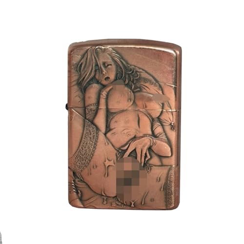 白銅製ヴィンテージレリーフセクシービューティー灯油ライター、昔ながらの砥石、詰め替え可能、コレクションに最適(灯油は含まれていません)(Red Copper-2)の製品情報