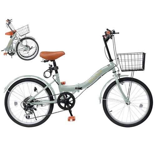 Mixiuの20インチ/24インチ折りたたみ自転車は、軽量設計で素早く折り畳め、シマノ7段変速搭載。高炭素鋼フレーム、調節可能なハンドルとサドル、空気入れ、ライト、カゴ、ワイヤロック付きで男女兼用の通勤・通学用自転車です。