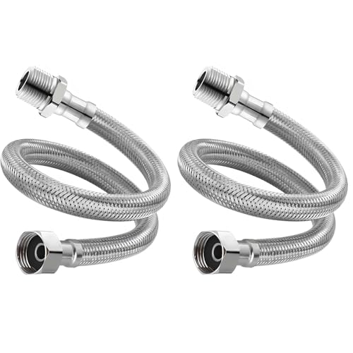 水道フレキパイプ 3/8インチ圧縮接続、給水管や延長配管用のフレキホース。厚ナット、ステンレス製で耐久性あり。蛇口、温水器、トイレ等に対応。長さ100cm、2本セット(20cm)。