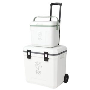 【公式】KS クーラーボックス 大型 36L / 38QT 6面全て断熱 キャスター付き 軽量 部活 BBQ アウトドア キャンプ 釣り ゴルフ 防災 (ホワイト36L&10Lセット商品)