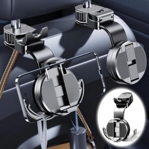 AUTIMHOO 後部座席 スマホホルダー & フック 2-in-1 多機能 クリップ式車載ホルダー【360°無段階回転·アルミ合金素材·25KG耐荷重】 車 ヘッドレスト シートフック 片手操作 1秒で着脱 車 荷物かけフック カバンフック付き 傘・鞄 収納 落下防止 車用 スマホスタンド カー用品 取付簡単 すべて4.7-7″のスマートフォンと多車種が対応 (ブラック1個)