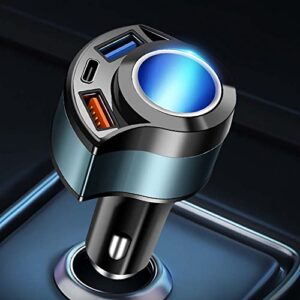 車載充電器 カーチャージャー PSE認証 4.8A 2USBポート USB Type-Cケーブル付き 電圧計 12V/24V車対応 スマホ急速充電 iPhone iPad Samsung Galaxyなと対応 (レッド)