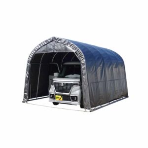 YKK カーポート エフルージュ FIRST Z 750タイプのM合掌セット。複合色のステインウォールナット/ブラック。標準柱(H22)付きで、一般ポリカーボネート板を使用した2台用ガレージ。全国配送可能。