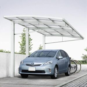 YKKカーポートエフルージュ750は、高耐久のアルミ製フレームを採用し、雨や雪から車を守ります。デザイン性も高く、様々な住宅にマッチします。幅750cmで、広い車両スペースを確保。