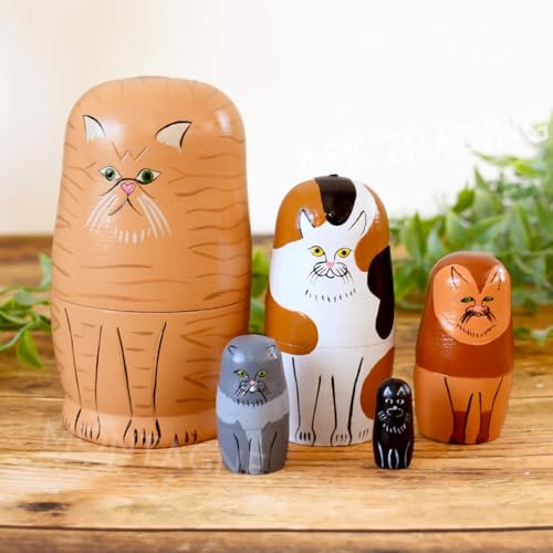 NEIN MARKEのマトリョーシカは、猫と犬のデザインが特徴。5個組で、木製のインテリア雑貨としてお洒落でかわいい。シュールな風合いが北欧スタイルにぴったり。プレゼントにもおすすめ!