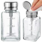 2個の6オンス(180ml)クリアポンプディスペンサーボトル。メタルフリップカバー付きで、ネイルポリッシュリムーバーやメイクアップリムーバーに最適。詰め替え可能なプッシュダウンポンプデザイン。