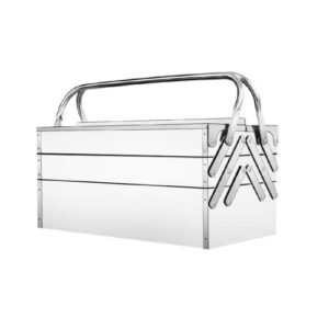タフシステム 収納BOXは、トートタイプの工具箱で持ち運びやすいロングハンドルが特徴。積み重ねて収納できる設計で、様々なツールを整理整頓できます。