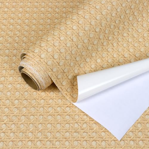 VEELIKEラタン柄 和風 リメイクシート 壁紙シール 厚手 PVC リアル籐編仕上がり 40x300cm 粘着テープ式 カット線入り 貼り剥がし可能 防水 耐熱 ふすま紙 和室 洗面所 ドア テーブル用 インテリアアクセント 初心者向け DIY リフォーム 高価買取中