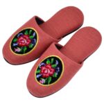 日本製のシェニールワッペン付きスリッパ。ロマンティックな薔薇柄で、レッド・ベージュ・ブルーの3色展開。サイズは~25cmで男女兼用。春夏秋冬使える来客用ルームシューズ。