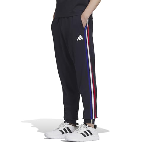 アディダスのESS+ 3ストライプス スウェットパンツは、メンズ用でレジェンドインク、チームロイヤルブルー、ホワイト、ベタースカーレットのカラー展開。快適な着心地とスタイリッシュなデザインが特長です。