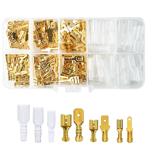 FineGoodの平型端子セットは135個入りで、圧着型の接続端子です。防水仕様で、自動車のカーナビ修理や加工に最適。オス・メスの端子が含まれ、収納ケース付きで便利です。