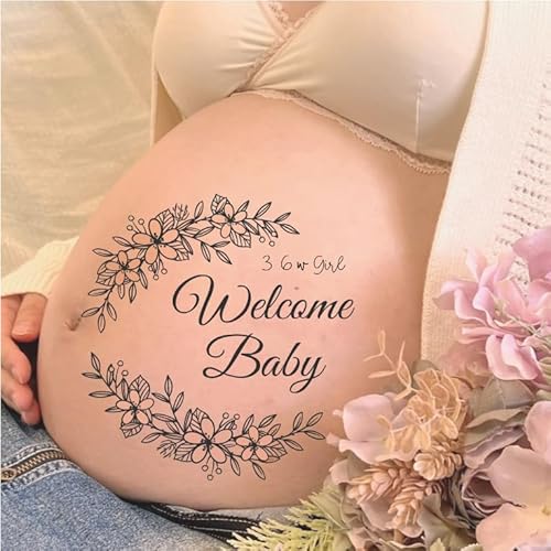 優しい素材の低刺激ソフトタイプ、プリモナベビーのマタニティフォトボディペイントシール。出産祝いやプレゼントに最適で、男女問わず使えます。貼り方説明付きのA4サイズで、かわいいフラワーデザイン!