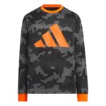 アディダスのキッズ長袖Tシャツ。モデル名はKGL39。カラーはグレーシックス/セミインパクトオレンジ。サイズは140。デイリーユースに最適なデザインで、快適な着心地を提供します。