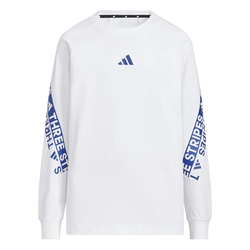 アディダスのキッズ長袖Tシャツ、ボーイズ用。カラーはブラック、製品番号はW6496(KA3788)。サイズは110で、快適な着心地を提供します。スポーティーなデザインが魅力です。