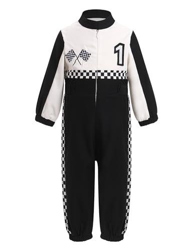IWEMEKの赤ちゃんレースカーテーマのロンパースは、1歳の誕生日に最適な長袖のレーシングスーツです。ブラックのパッチワークで、ケーキスマッシュにもぴったり。