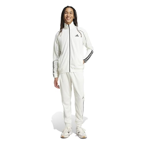 アディダスのジャージ上下セット、STAトラックスーツメンズKLG53。色はオフホワイト/ブラック、スタイリッシュなデザイン。快適な着心地を提供し、スポーツやカジュアルシーンに最適。サイズL。
