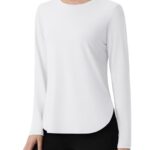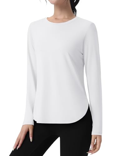 KEFITEVD長袖tシャツは、女性用のスポーツインナーでUVカットUPF80+機能付き。体型カバー効果があり、通気性に優れたトレーニングウェア。クールネックデザインで、快適な着心地を提供します。サイズはL、色はホワイトです。