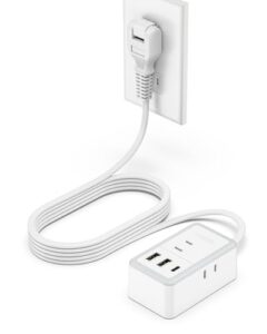 NTONPOWERの薄型プラグ延長コードは、旅行や出張に最適な0.85mモデル。3つのAC口、1つのUSB-C、2つのUSB-Aポートを備え、巻き取り式でコンパクト収納が可能です。