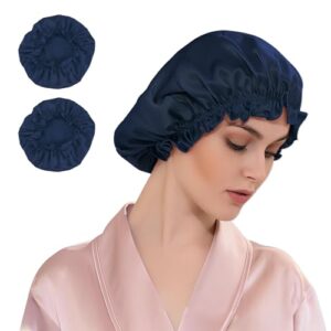 ナイトキャップ ヘアケア帽子 ネイビーブルー