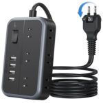 NTONPOWER延長コード1mは、6口のACコンセントと4口のUSB-Aポートを備えたタコ足配線です。雷ガード付で安全性も高く、オシャレなデザインで壁掛けや卓上で使えます。