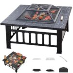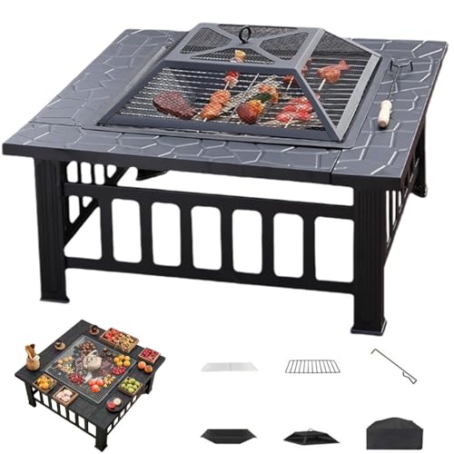 Nihigの多機能ファイヤーピットテーブルは、スパークスクリーンや炉用ポーカー、バーベキューボウルを備えたステンレス製で、耐熱性があり、キャンプや家庭用に最適です。