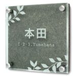 Anvisの戸建て表札プレートは、立体的なデザインで、ダーク和紙柄の140mm角のアクリル製。屋外使用可能で、住所や名前を彫刻可能。両面テープ付きで取り付け簡単。おしゃれな門柱用のアイテムです。