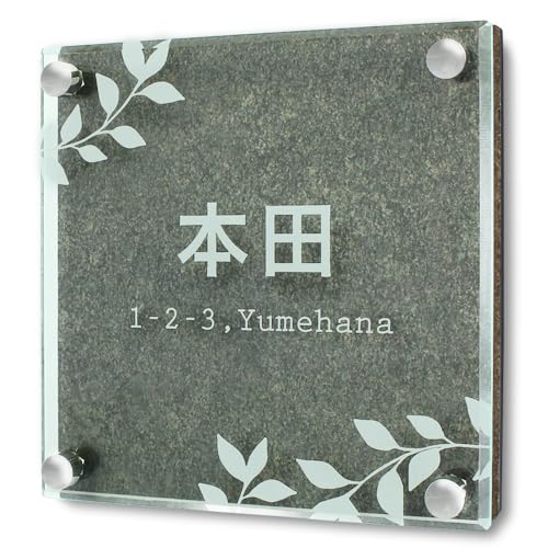 Anvis 戸建て 表札 プレート 立体 住所 番地 門柱用 ネーム オーダー クリア ガラス アクリル 屋外 彫刻 おしゃれ (ダーク和紙柄, 140mm角 両面テープセット)の高価買取ITEM
