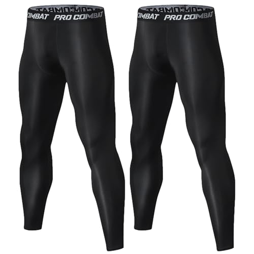 メンズスポーツレギンス、速乾・伸縮性に優れたコンプレッションウェア。ランニングやトレーニングに最適なブラック2枚セット(Mサイズ)。