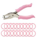 RuiChyの穴あけパンチは、穴径6mmで金属製。最大8枚の紙を一度にパンチ可能。カードリングやバインダーリング付きで、DIYや事務作業に最適な手持ち単穴タイプ。ピンク色が特徴です。