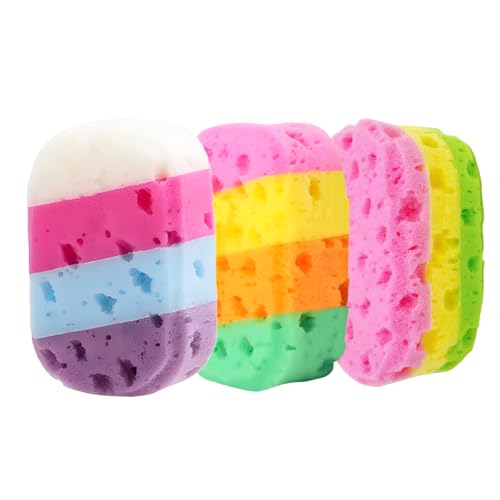 バススポンジ3個セット、シャワースポンジは柔らかく赤ちゃんにも安心。ボディクレンジングと角質除去に優れ、毎日のスキンケアを快適にサポートします。