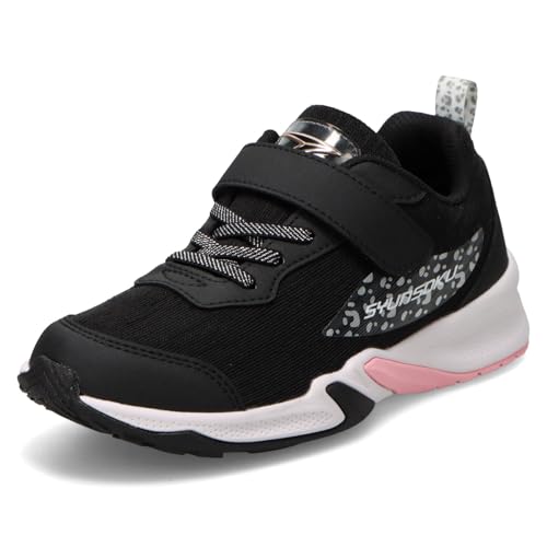 シュンソクのスニーカーは、キッズ用の軽量モデルで女の子にぴったり。16~25cmのサイズ展開、2.5E幅で、ブラックデザイン。22.0 cmのサイズあり、快適な走りをサポートします。