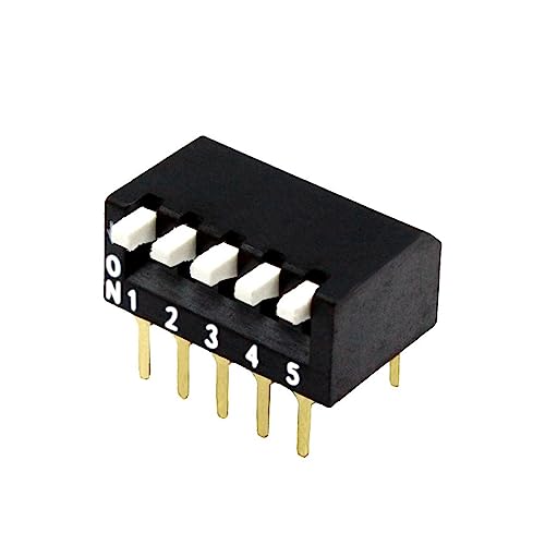 KH-05 横方向 2.54ピンピッチ5ポジションの湾曲針金メッキ耐熱DIPスイッチです。高耐久性を持ち、デバイスのコーディングに最適。
