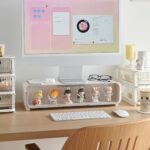 卓上パソコン台はモニター台やデスクオーガナイザーとして使え、キーボード収納やフィギュア展示も可能。工具不要で大容量引き出し付き、スマートフォンスタンド機能も搭載。