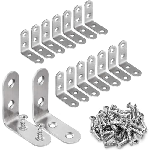 SensaBliss アングル I字金具はステンレス製で、16個のL字アングルブラケットと64個のネジが付属します。直角ブラケットとして、コーナーブレースや棚受け金具に最適で、転倒防止や補強、固定に役立ちます。サイズは40*40*16mmです。