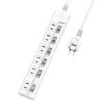 エムサインMscienの延長コード1mは6個口で、スイッチ付き、雷ガード機能を搭載。壁掛けや卓上使用にも適し、ほこり防止や個別スイッチで便利。おしゃれなデザインで極性対応のたこあしコンセントタップです。