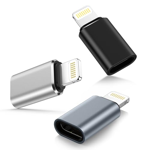 C to ライトニング変換アダプタ(3個セット)。アルミ合金外装、PD充電対応、iPhone 14/13/12/11 Pro MaxやiPad Pro/Air/Miniに使用可。OTG機能付き、イヤホン非対応。