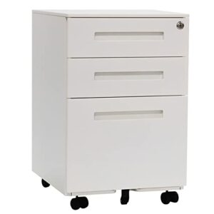 【メーカー直送】 MTLES 3段引き出し可動式キャビネット デスクキャビネット ワゴン オフィスワゴン 脇机 組立不要 完成品 デスクサイド 鍵付き 袖机 デスクサイド収納 大容量 A4対応 スチール製 ホワイト