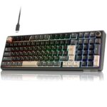 RK ROYAL KLUDGE R98 Proは、フルサイズの日本語配列ゲーミングキーボード。メカニカルスイッチ、RGBバックライト、ホットスワップ対応で、ボリュームノブやガスケットマウント構造を備えた高機能モデル。