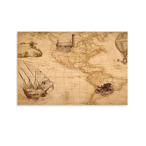 このポスターは、古代の世界地図や海図をモチーフにした美しいレトロデザインの装飾画です。サイズは20×30インチ(50x75cm)で、現代的なインテリアにぴったりのアートパネルです。