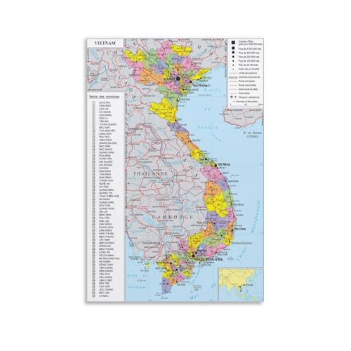 20×30インチ(50x75cm)の現代的なVietnamおよび世界地図のポスター。インテリア装飾やアートパネルに最適な壁アート。高品質な版画で、どんな空間にも美しい雰囲気を加えます。