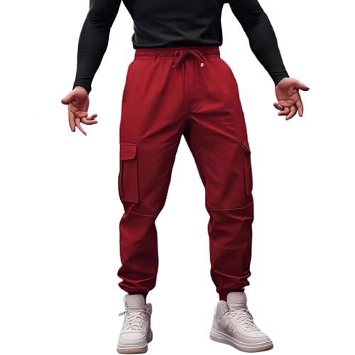 KULIXI ジョガーパンツ メンズ カーゴパンツは、トレーニングやフィットネスに最適なスリムデザイン。多機能で登山や作業着にも対応。ゆったりしたロングパンツ、カラーはレッド、サイズはM。