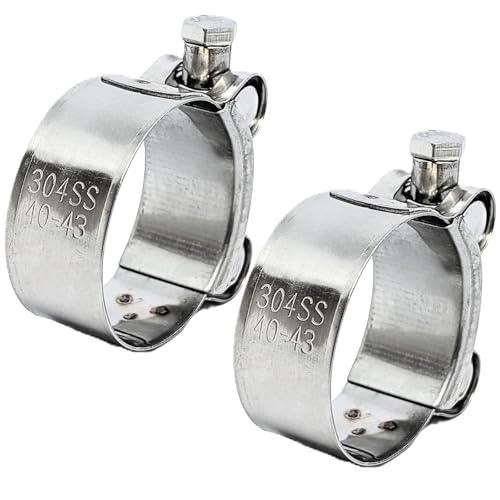 nanomaru ステンレス製マフラーバンドクランプは、40-43mmの排気管に対応する汎用パーツです。バイクやオートバイのサイレンサーをしっかり固定し、耐久性に優れた2個セットです。