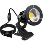 LEDクリップライトは防水型で屋外使用に最適な10Wのスポットライト。コード長3m、中間スイッチ付き。看板や黒板の照明に適し、PSE認証済み。色温度3000K、1個セットです。