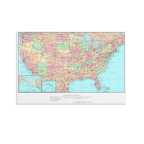 アメリカ地図を描いた24x36inch(60x90cm)のキャンバスアート。ポスターや壁装飾に最適で、バスルームなど多用途に使用できます。美しいプリントで魅力的な空間を演出。
