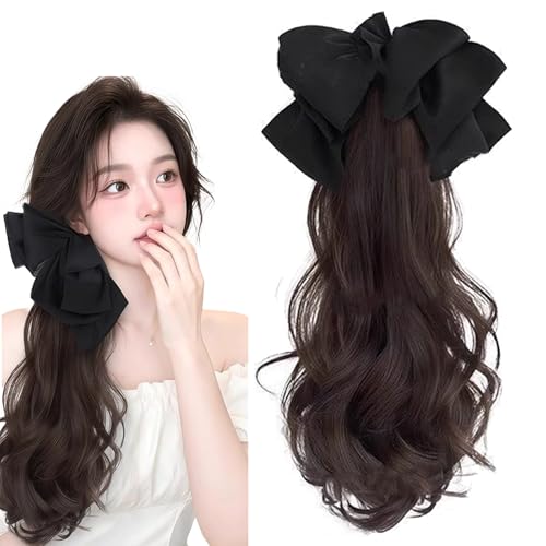 TokTechポニーテールウィッグは、45cmのダークブラウン/ブラックティーで、クリップ式。リボンクリップ付きで、自然な仕上がり。日常使いやイベント、コスプレに適しています。
