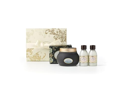 SABONのヘアケアトライアルキット(グリーン・ローズ)は、300gのシャンプーと、50mLのコンディショナー、50mLのヘアマスクが含まれています。髪をしっとりさせ、心地よい香りを楽しめるセットです。