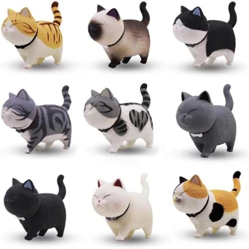 SensaBlissの猫フィギュア9個セット。可愛い猫の置物で、インテリアや卓上飾りに最適。車内アクセサリー、盆栽やガーデンにも合う。新築祝い、誕生日プレゼントに人気。