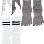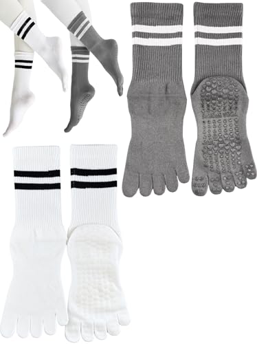 [Monlyu] ヨガソックス 5本指 滑り止め レディース ピラティスソックス ヨガ 靴下 抗菌防臭 ロング ピラティス スポーツ トレーニング グリップ ソックス すべりどめ ウェア 冷房対策 防寒対策 くつした くつ下 吸湿性 通気性 速乾 くすみカラー (JP, アルファベット, Free Size, A.ホワイト/チャコールグレー(2足セット))の高価買取ITEM